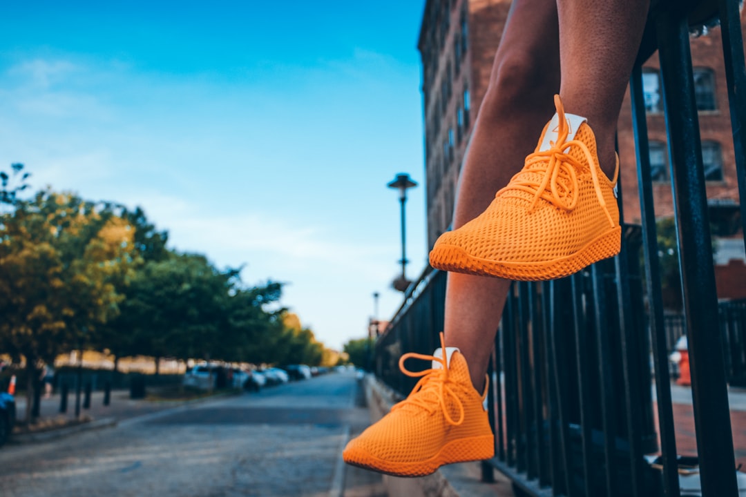White shoes offer a fresh, clean contrast to an orange dress. They are particularly appealing in the warmer months and can help create a light, airy look. Opt for white sandals or sneakers for a casual look, or white heels for something more formal.